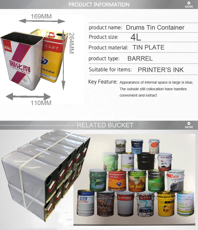 | product name | 4L F type square engine oil tin can with metal handle and lid |